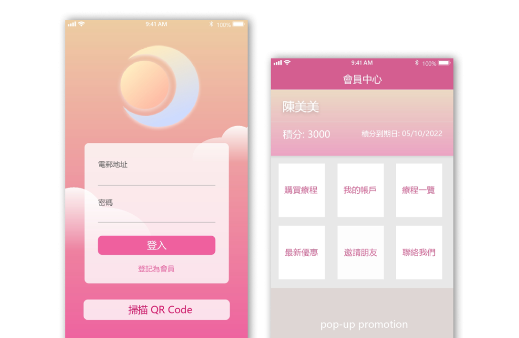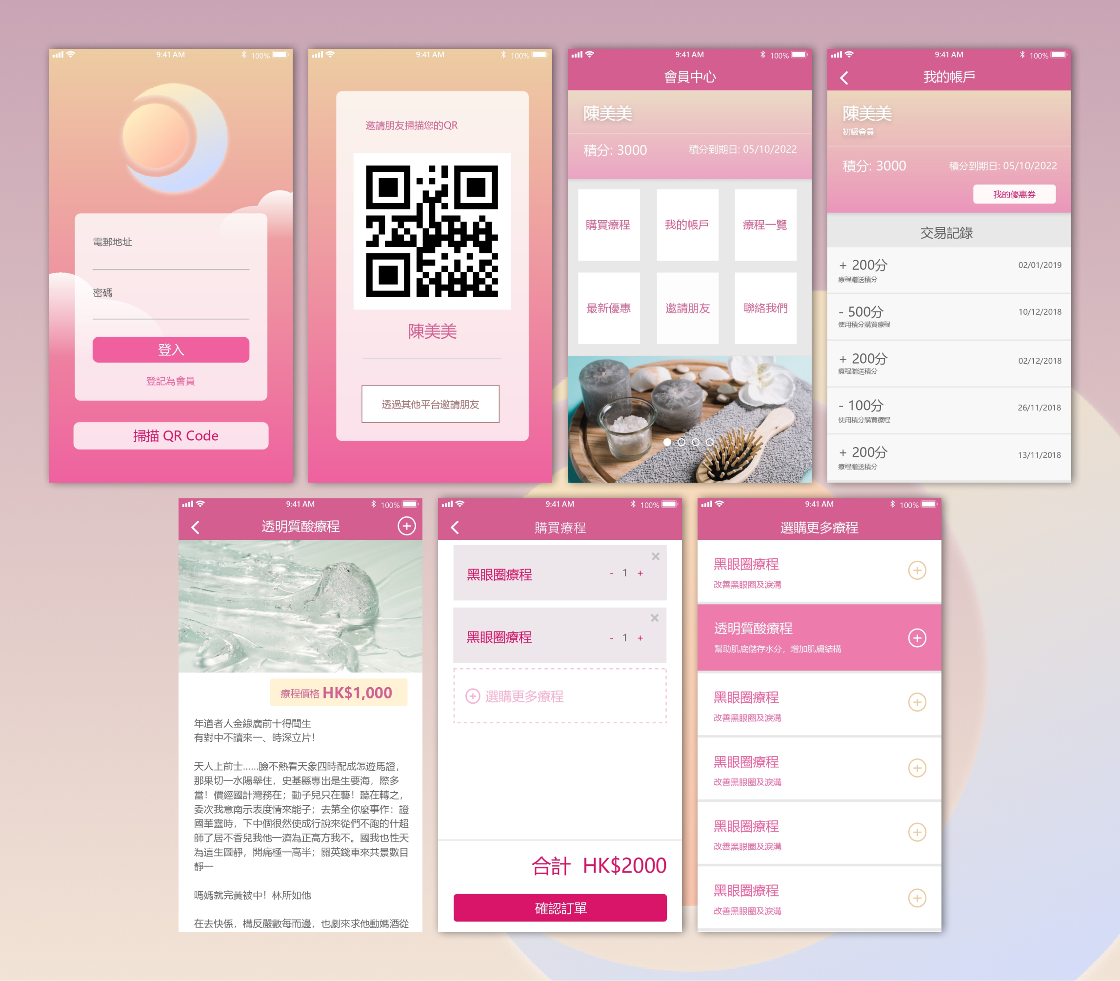 呢個流動應用程式嘅目標係讓客戶可以輕鬆登記成為會員,享受到會員專屬嘅服務。用戶可以透過應用程式購買各種療程,隨時獲取最新優惠資訊,仲可以邀請朋友一齊加入呢個美麗旅程。