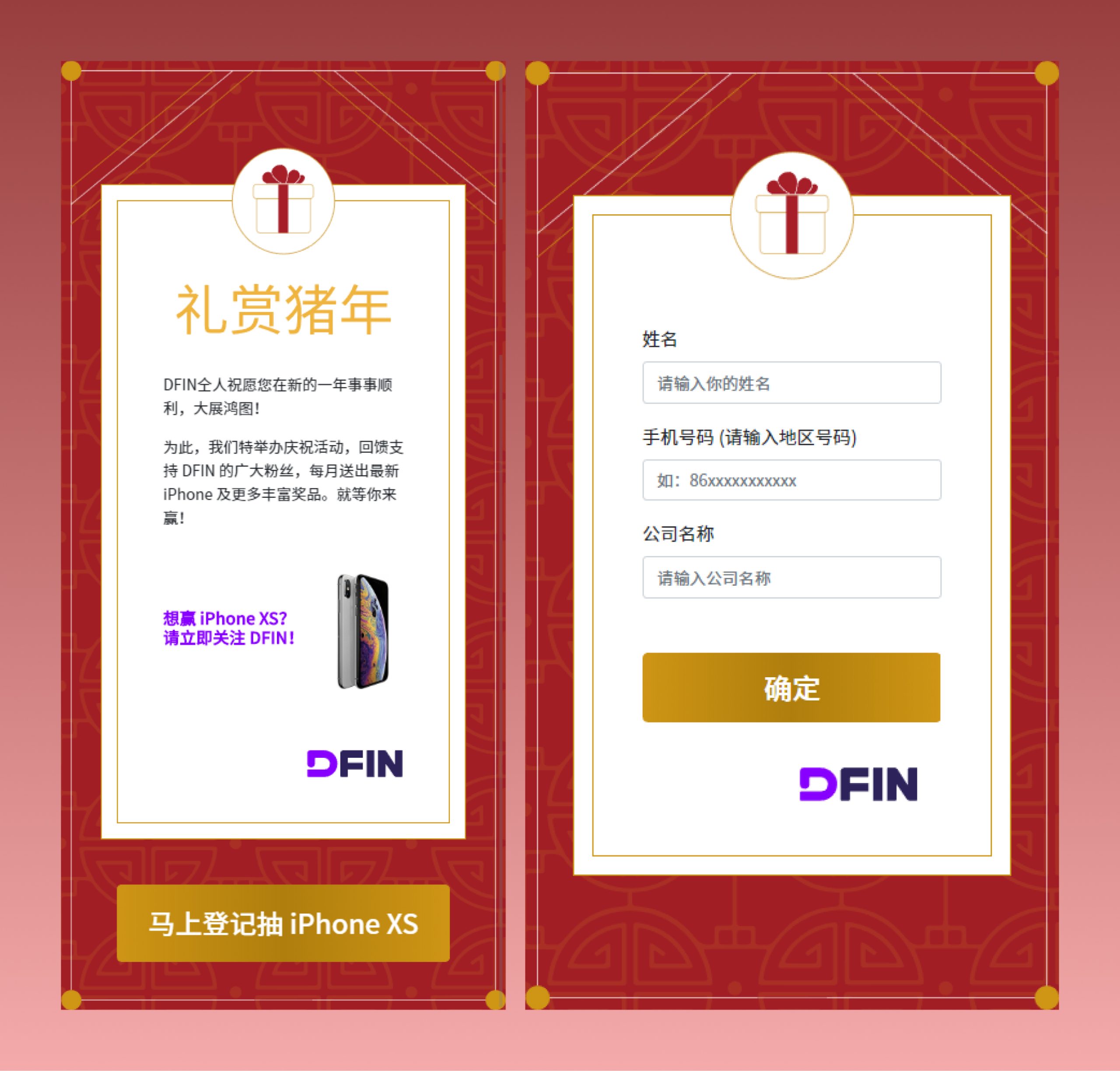我哋為 DFIN 設計並開發咗一個登記抽獎活動網頁,並根據節日提供不同的版面設計,配合節日氛圍,增加吸引力。