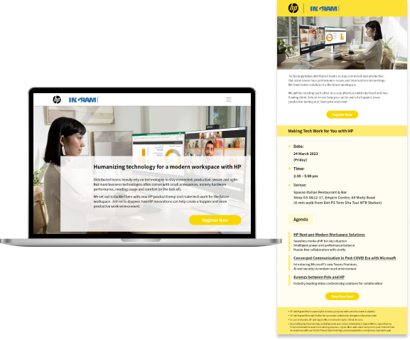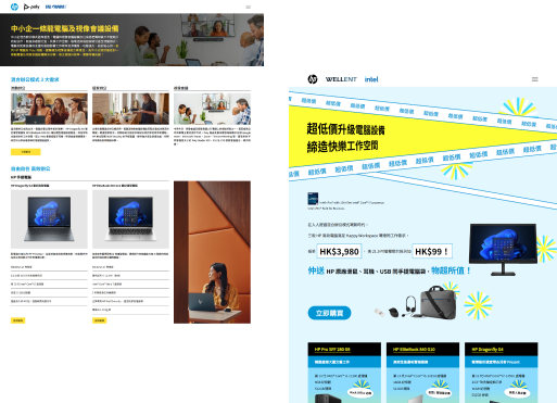 為 HP 開發專屬嘅宣傳網站,除咗可以有效將活動資訊傳遞比客戶,仲有效地收集用戶數據,為後續嘅精準營銷提供了數據支持,展示咗數碼化工具喺提升品牌影響力和市場競爭力嘅潛力。