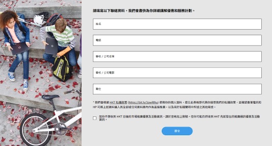 頁面中包含表格供用戶留下個人資料
