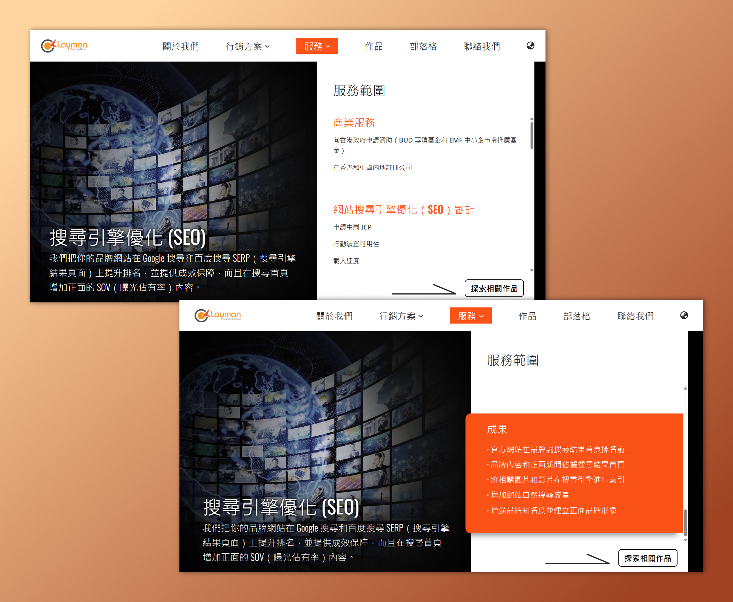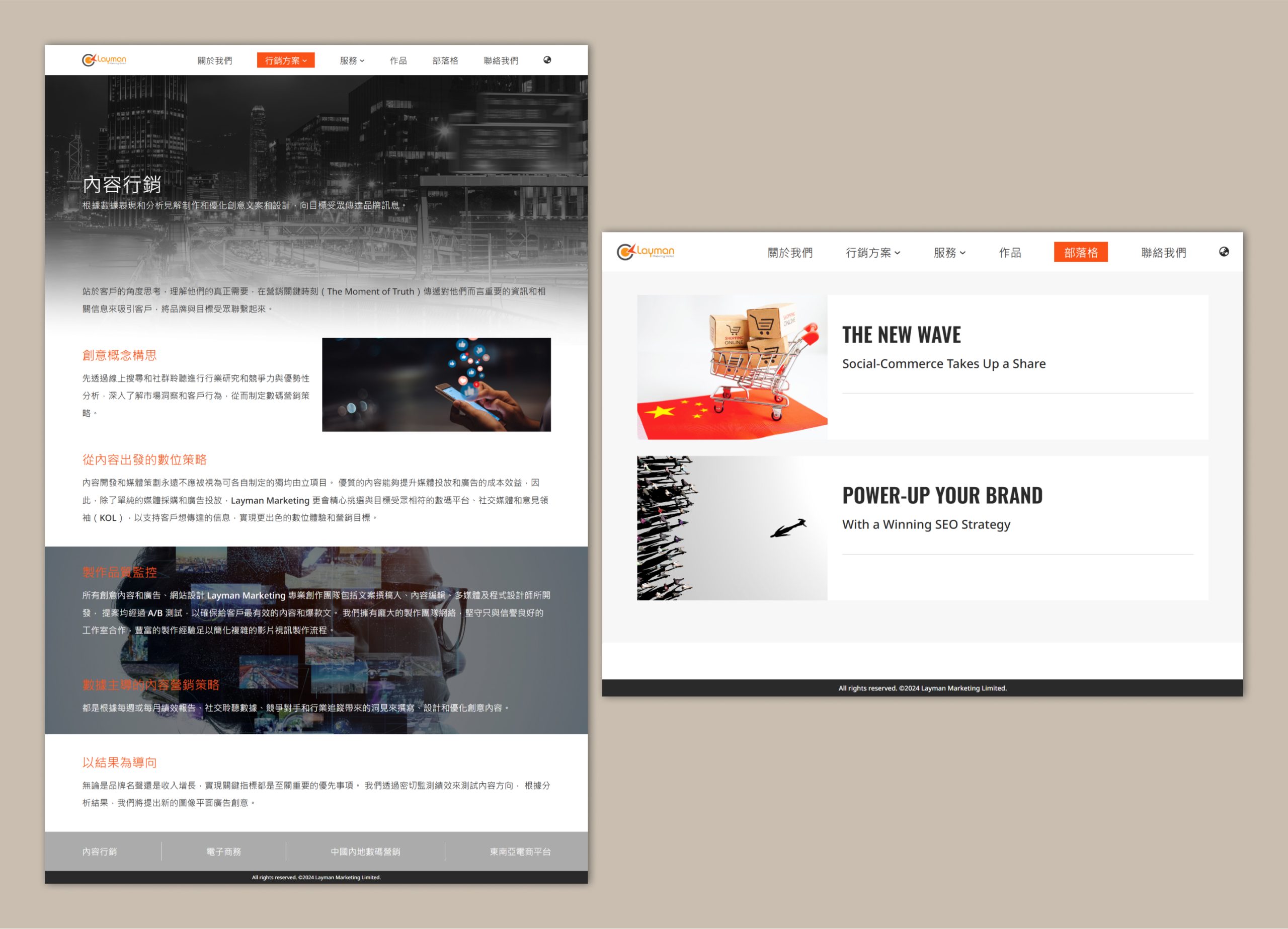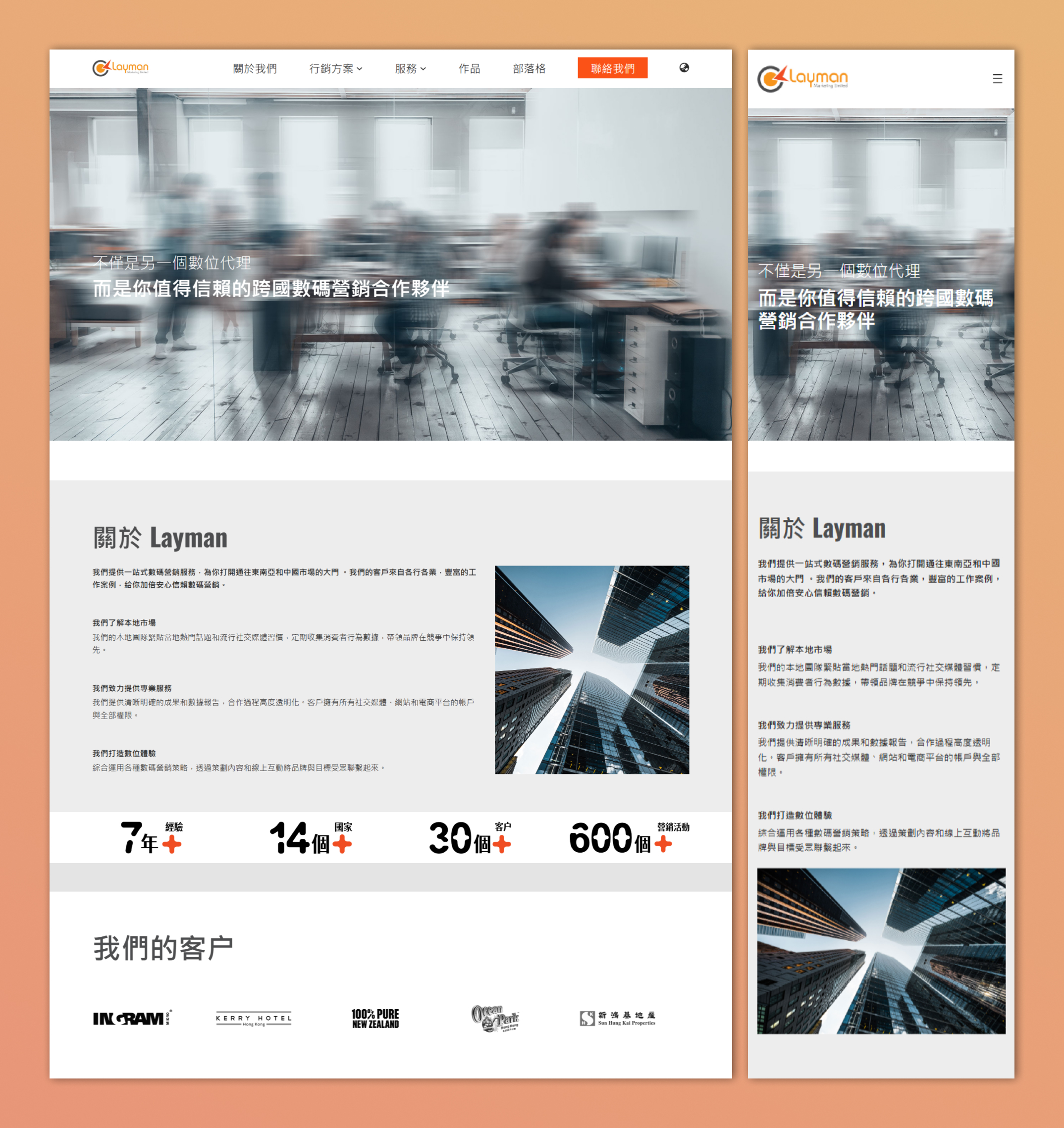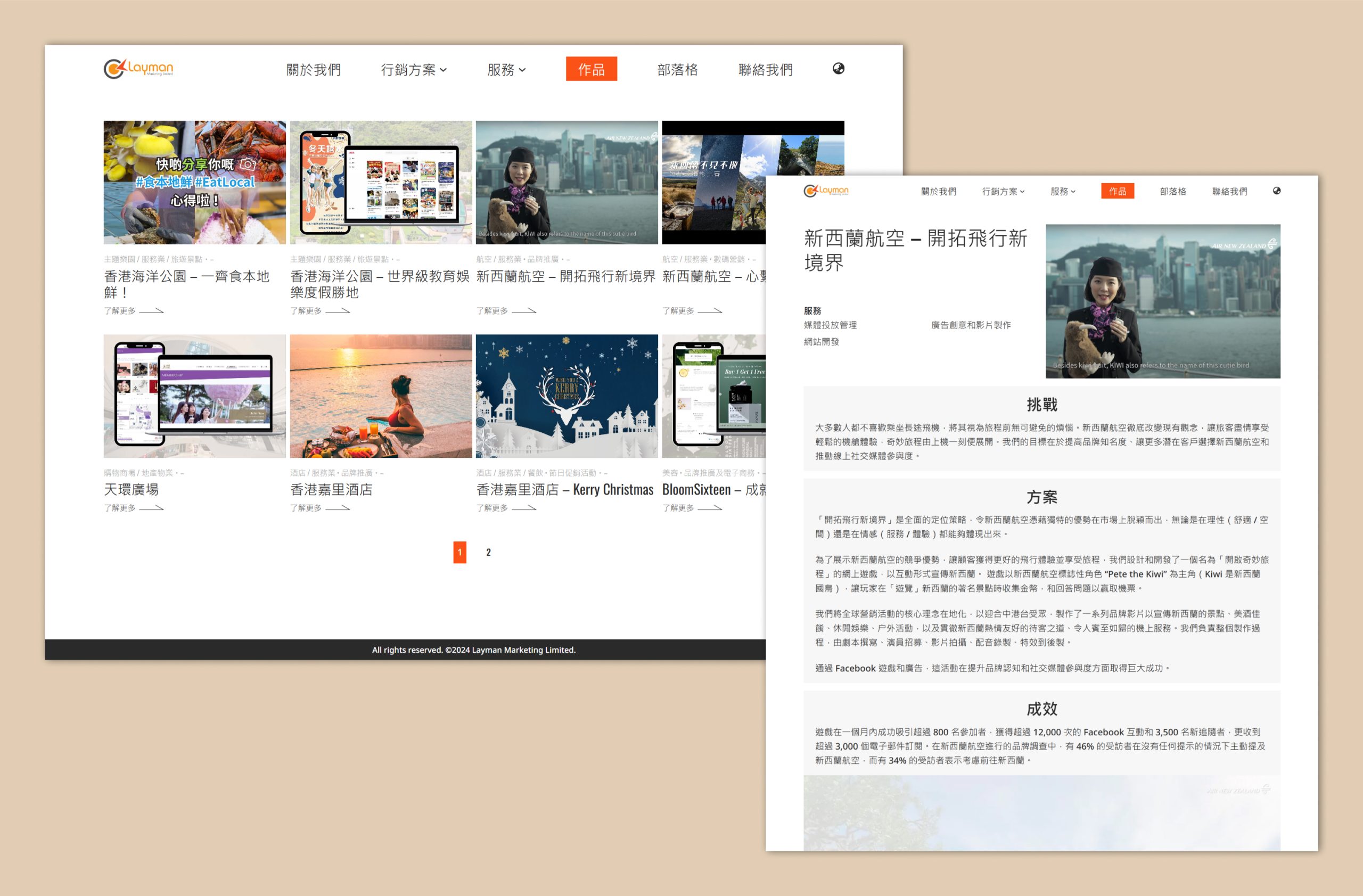 經過一段時間,洛鑫推廣有限公司(Layman Marketing Limited)決定更新佢哋嘅官方網站,以配合市場趨勢同提升品牌形象。我哋按照洛鑫提供嘅最新設計製作網站,喺開發過程中亦與洛鑫保持溝通,確保每個細節都符合佢哋最新嘅願景。
