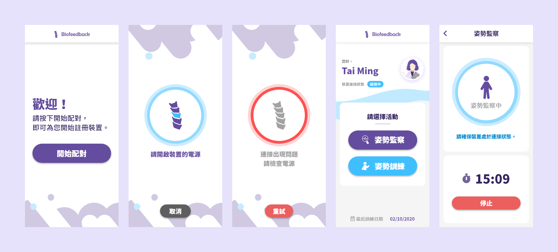 我哋與香港理工大學配合研發咗一款 Biofeedback 配有感應裝置嘅矯正背心,期望突破復健運動嘅發展空間及設計局限。只要將感應裝置與配套嘅 Biofeedback 流動應用程式連接,就可以實時檢測使用者嘅姿勢。研究團隊希望利用輔助產品嘅便利性,從而提高患者嘅復健意願,鼓勵傷患者堅持練習。